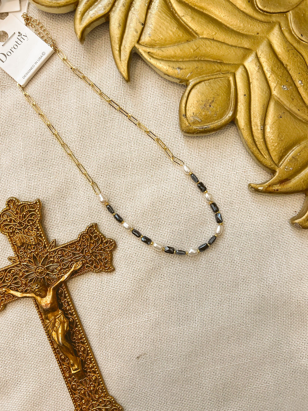 Navy & Pearl Charm Chain Necklace